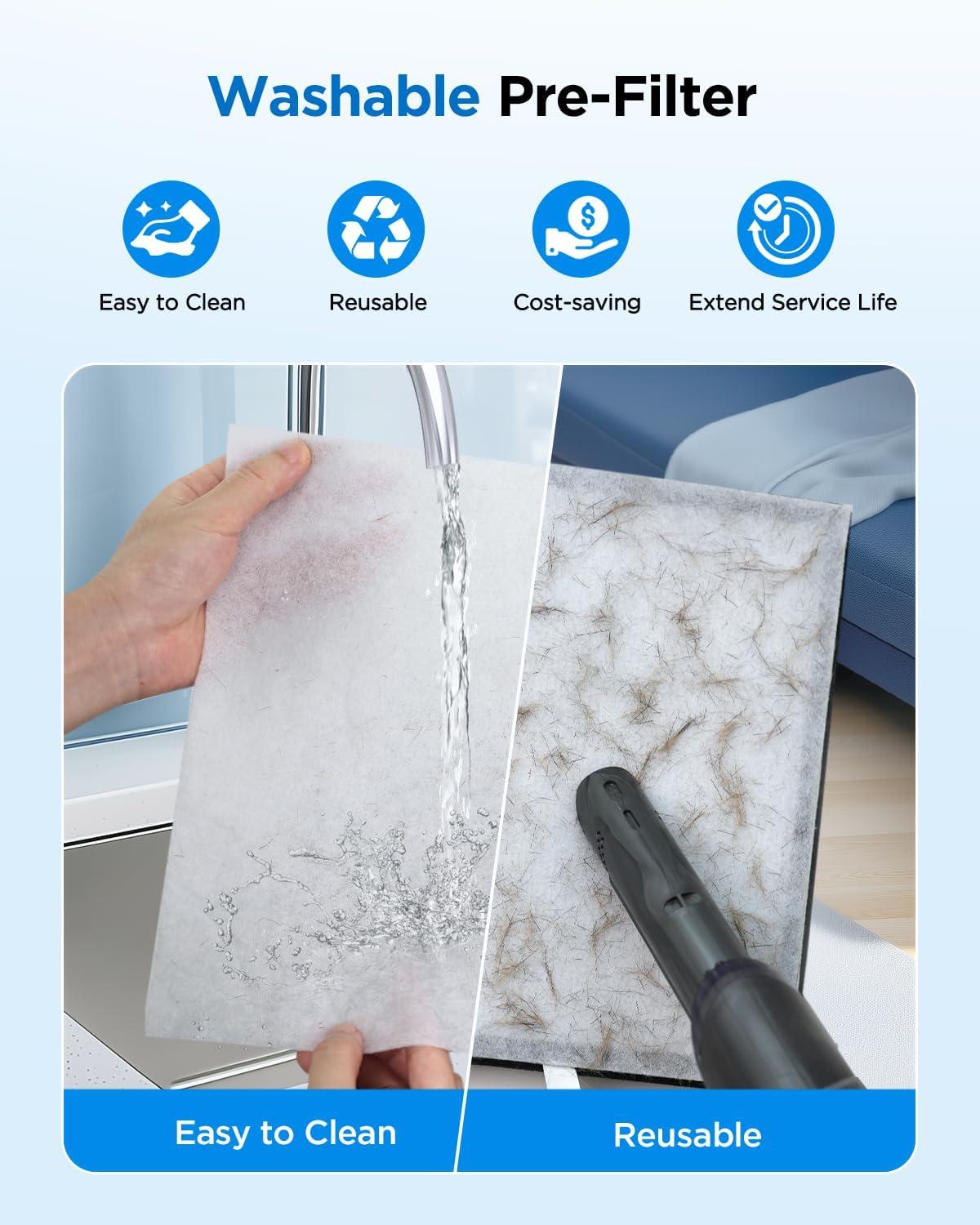 【Washable Pre-Filter & Long-Lasting】The pre-filter of this HKB320F filter features the latest washable design, allowing it to to be cleaned with water or a vacuum cleaner.Regular cleaning of the pre-filter helps extend the lifespan of the filter and the air purifier, enhancing cost-effectiveness and saving you money.