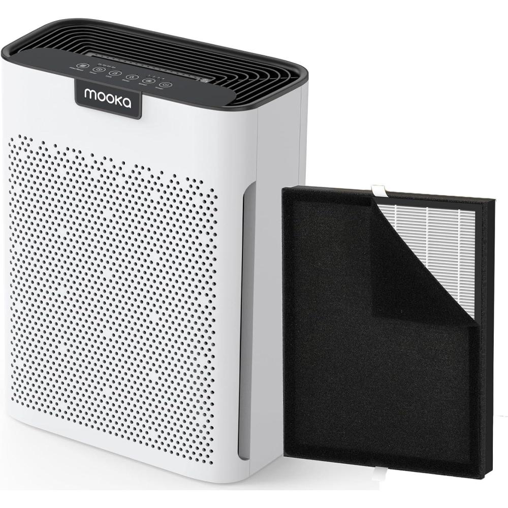 MOOKA M05 Air Purifier White (Filter pre-installed) & 1 Pack Extra Official Certified Replacement Filter,Air Purifiers for Home Large Room Up to 1250 Ft², MOOKA H13 HEPA Air Purifier for Pets Dust
