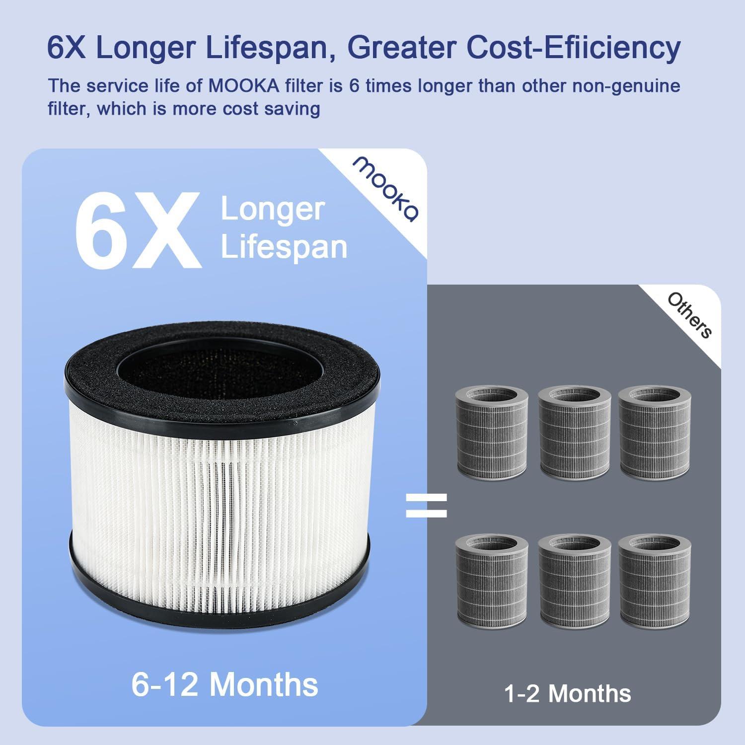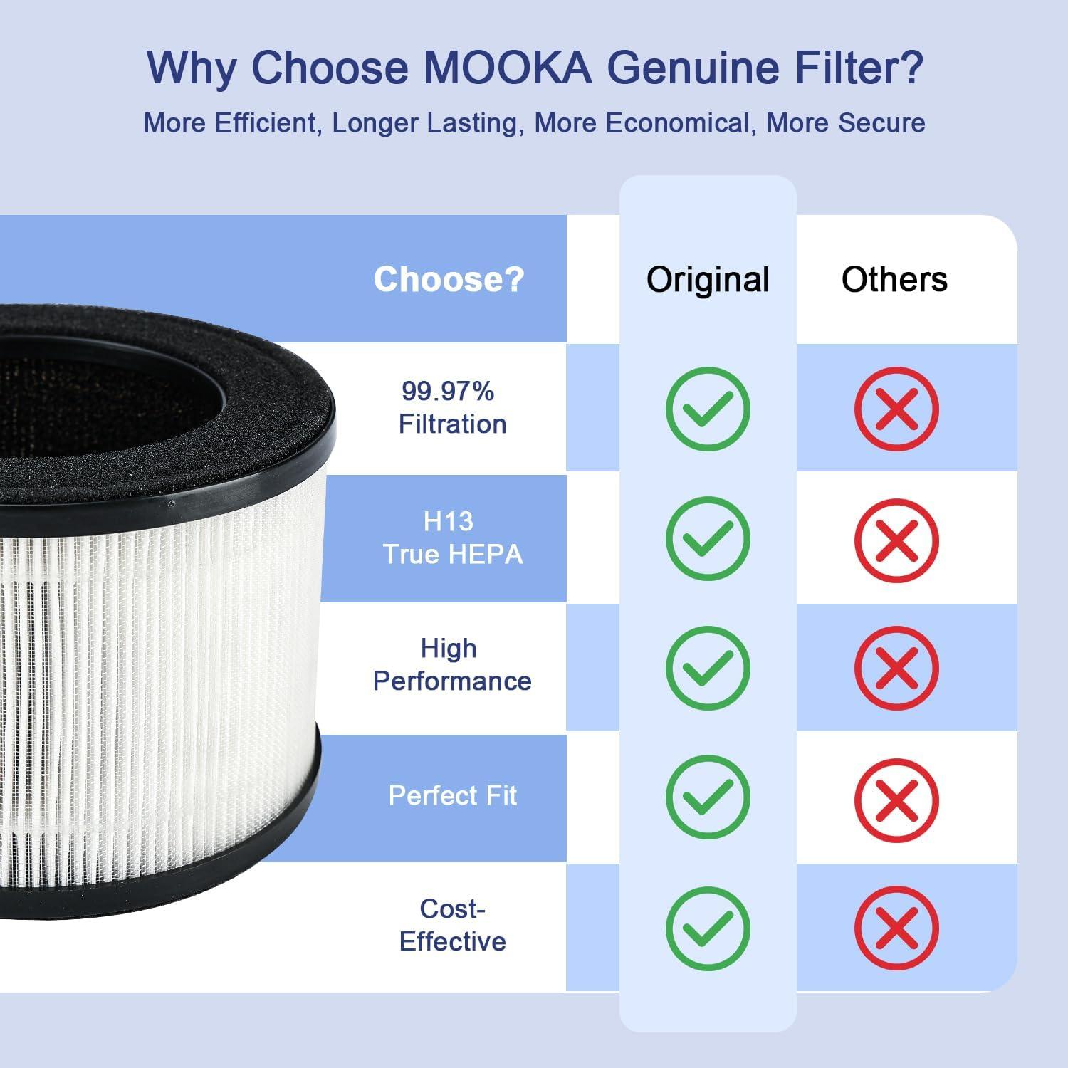 Genuine Mooka Air Purifier Replacement Filter: certified replacement filters for the Mooka M01 air purifier. Item size: 5.12×5.12×3.39 inches.