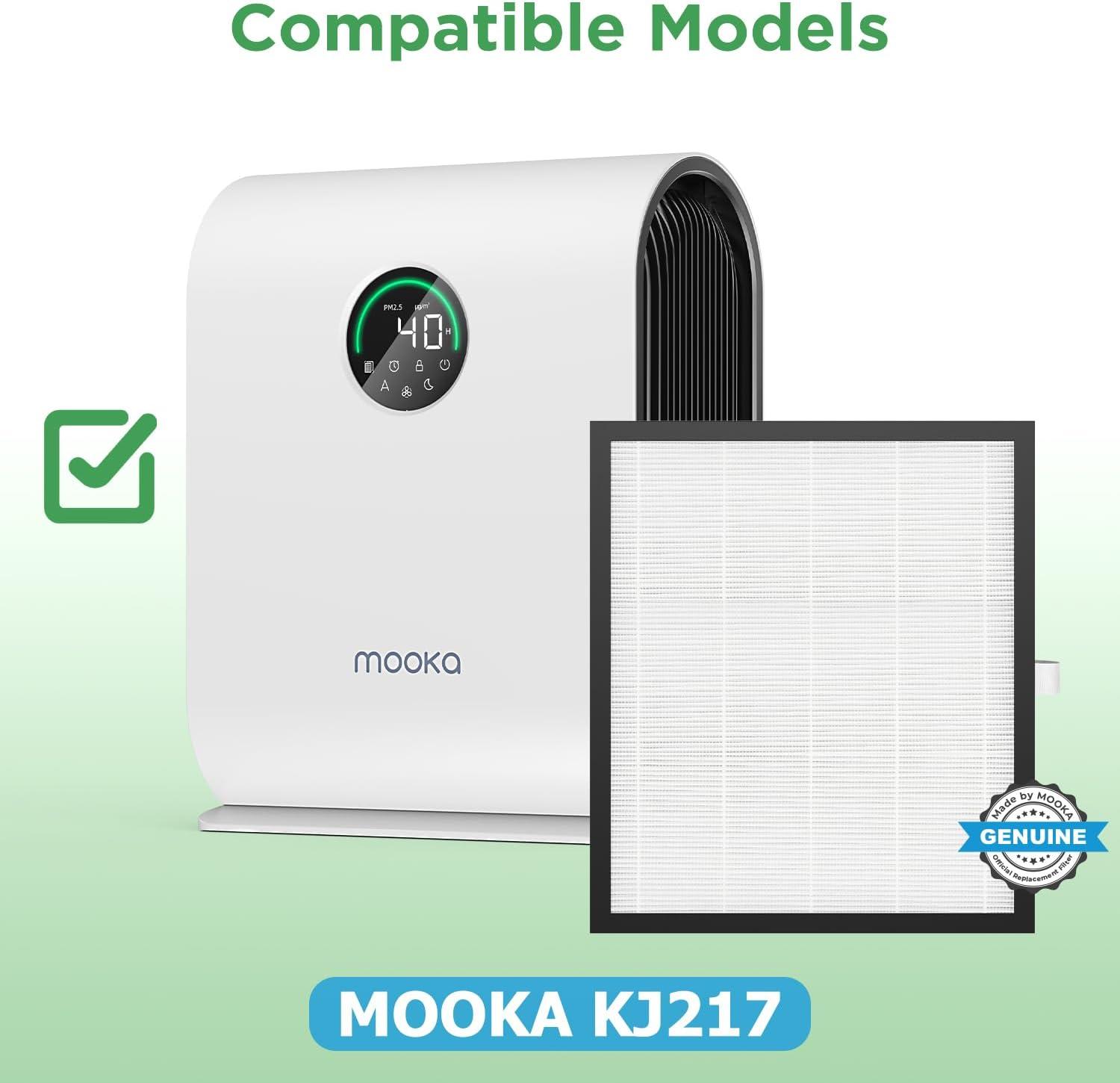 MOOKA KJ217 Air Purifier Filter, 3-in-1 True HEPA Filter, High-Efficiency Activated Carbon Air Filter for Smoke, Odor, Dander, Pollen