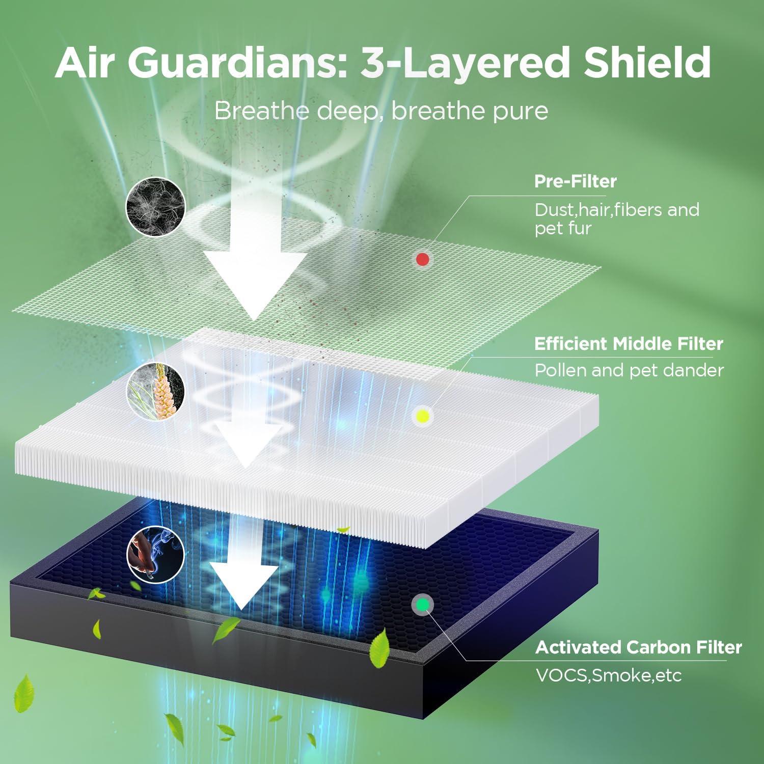 Enhanced Filtration Capabilities: Equipped with advanced HEPA and activated carbon layers, our replacement filter captures up to 99.97% of harmful particles like dust, pollen, pet dander, smoke, and even harmful VOCs (volatile organic compounds).